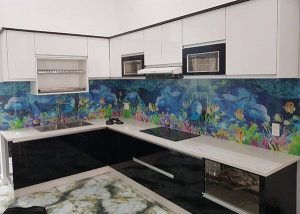 Mẫu kính ốp bếp hoa văn 3D đẹp
